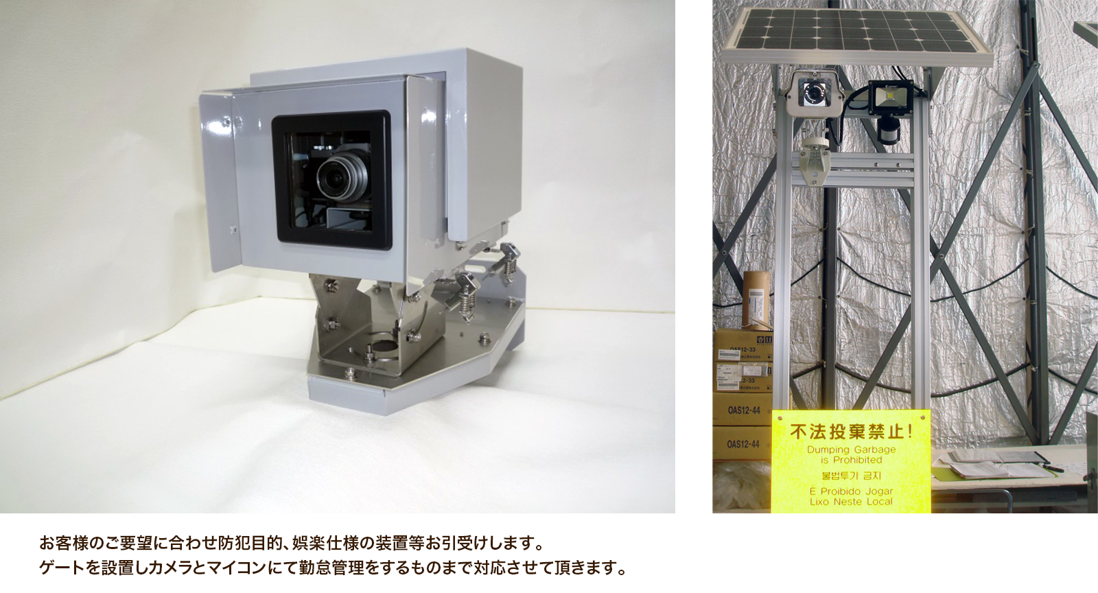 開発・施工事例紹介 開発製品など是非ご覧下さい。 八和エレック株式会社での開発製品、各種制御盤や設備工事の施工事例などを掲載しております。 防犯カメラ 運送会社の駐車場に防犯カメラと照明の設置工事をしました。 ポール立てと基礎工事及びケーブル配管地中埋設工事も 当社で施工しました。 プラント工事 全部バラバラに手動で作られたテストプラントをお客様のご要望により、自動化製造プラントに改修しました。 不可能を可能にする工事で大変な作業でしたが無事製造プラントが完成しました。 7か所新設
